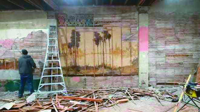 尼克表示,裝修工人拆除灰泥牆後,看見長十八公尺、高六公尺描繪湖泊、小屋和樹木的巨幅壁畫,當時工人認為對面牆後應該也有相對應的壁畫,一拆果不其然。