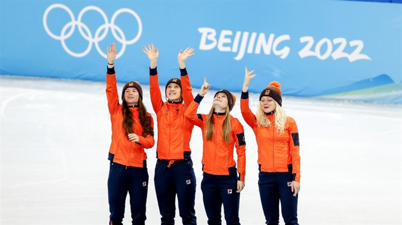 【記者曾博群綜合外電報導】荷蘭隊14日在北京冬奧運女子3000公尺短道競速滑冰接力項目,擊敗南韓、中國隊奪金,頒獎儀式時4名選手特別一同舉手、指向天上,緬懷2年前病逝的隊友凡魯伊文(Lara van Ruijven),她在2年前因自身免疫性疾病突然發作驟逝,原先也預計參加今年的冬季奧運。