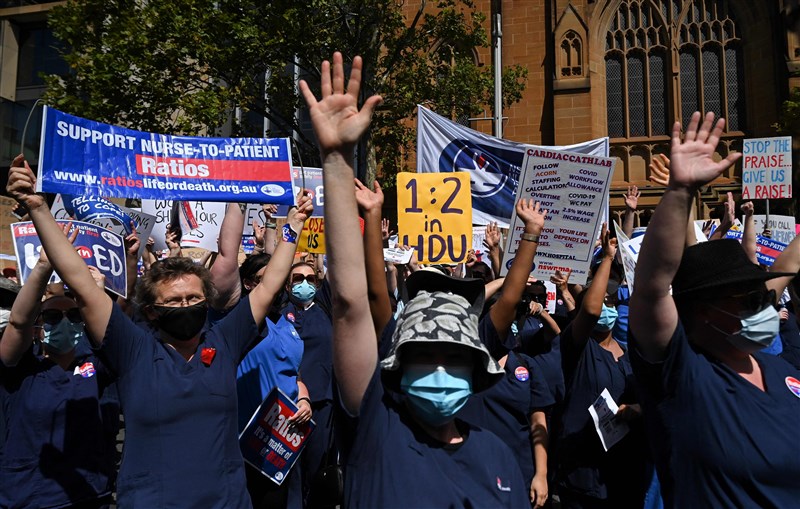 人力短缺使壓力大如山 雪梨數千名護理師罷工 |2022.02.15 語音朗讀 632觀看次 字級 大 中 小 雪梨有數千名護理師罷工,上街抗議人力短缺與新冠疫情下的壓力和限制。圖/法新社 【本報綜合外電報導】澳洲第一大城雪梨今(15)日有數千名護理師離開崗位,上街抗議人力短缺與新冠疫情下的壓力和限制。法新社報導,數以千計護理師無視罷工禁令,身著工作服和外科口罩前往州議會遊行,聲稱情況已忍無可忍。面對醫院床位與設備持續短缺,加上沒完沒了的疫情,成群結隊的護理師高聲表達憤怒。他們高舉標語牌,上頭寫著「護理師撐不住了」、「多些人手、少些壓力」、「光對我們說謝、口惠實不至」等,抨擊政治領導人無視護理人員困境。圖/美聯社兩年來,澳洲醫護人員一直在嚴格規範下工作,在從事日常工作外還得因應前所未有的大規模疫苗接種計畫。特別是近幾個月來,確診人數爆炸性增加,也造成愈來愈多醫護染疫或被迫隔離,醫護人力嚴重短缺。新南威爾斯州護理師與助產士協會(New South Wales Nurses and Midwives' Association)說:「社區需要知道真相,目前人力不足,安全也不夠,已讓病患身處危險之中。」圖/法新社新南威爾斯州衛生廳發表聲明雖感謝護理師「在疫情這兩年期間的工作不懈」,卻也說「目前新南威爾斯州公立醫院的護理師和助產士,多於過去任何時期」。澳洲勞資關係法院(Industrial Relations Commission court)先前已下令禁止罷工,但遭工會拒絕,工會組織者表示正考慮是否擴大罷工。在Omicron變異株推波助瀾下,澳洲每天新增數千例確診與數十人病故。全國2500萬人口迄今已累計250萬例染疫。 前一篇文章 根本問題不解決 「一蛋難求」還有續集 下一篇文章 吃多傷身!消基會抽查市售零食 高油高鈉又高糖 熱門新聞 01屏東.春日 太陽之子南島風 陶壺印記排灣情2026.01.2602【研朱札記】《臺灣文學》的 誕生地──山水亭2026.01.2703吃素好體力 霍諾德登頂101 2026.01.2604【藝象空間】內觀造景 哲人哲思 ──楊英風的大乘景觀2026.01.2505佛光山職員歲末聯誼 祈願和諧共生2026.01.2406【海闊天空】廢墟中重建 塵土之上的伊拉克2026.01.2407澤倫斯基瑞士演說 控俄飛彈含台灣零件 2026.01.2408天元宮聯名幾米 邀您一起賞櫻花2026.01.2509完成星雲大師心願 2027大學校長會議 南華大學承辦2026.01.2410【閃文集】獨特自主的貓咪2026.01.27 訂閱電子報 台北市 天氣預報 台灣一週天氣預報 相關報導 魯比歐:習視統一為歷史使命陳菊辭監察院長 李鴻鈞代理睽違24年 央行啟動新台幣改版海鯤號6度海測 台船:安全無虞下交艦金門馬 逾千大陸跑者成亮點陸海警侵擾金門 海巡署強勢驅離