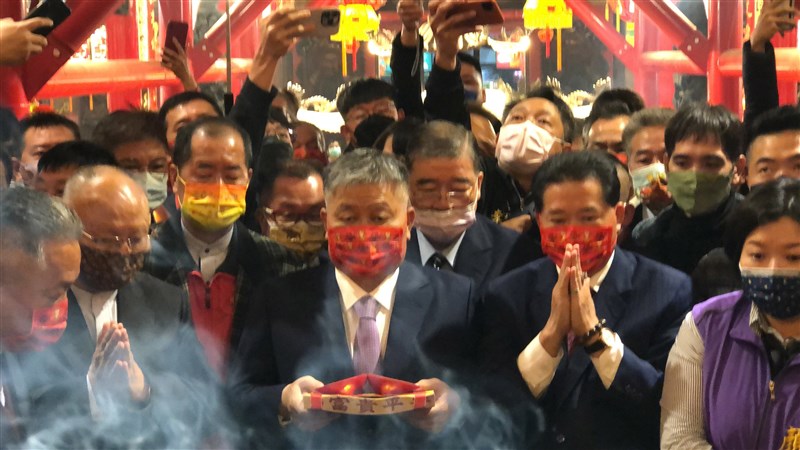 大甲鎮瀾宮下午舉行筊筶典禮,董事長顏清標率全體董監事向媽祖上香參拜後,擲筊請示媽祖。結果指出,遶境進香活動將延續前2年防疫的規畫,除要求工作人員造冊、每天消毒車輛及量體溫,還務必全程戴口罩,並為保持社交距離,強調「不稜轎底」。