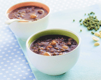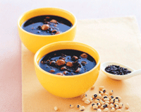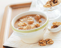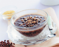 與甜粥纏綿─電鍋輕鬆煮 記者李碧華 |2008.02.03 語音朗讀 6712觀看次 字級 大 中 小 過年全家人圍爐吃大菜之餘,以電鍋來做5道甜品,帶家人優質的年節美食,這是件幸福的事!家家必備的電鍋是廚房的得力幫手,它並未被電子科技發展的洪流所淹沒,反而在健康意識抬頭的今天,更突顯其多元功能,更有歷久彌新的另類評價。在忙忙忙的有限時間裡,不必大費周章,只要按下啟動鍵,即可以省下料理的時間,同時可處理多件事。在輕食新概念裡,電鍋料理保留了食物的原汁鮮味及營養成分,可煮出少油低脂的健康美食,是最佳的養生和健康取向。其無油煙、零污染、省能源、高安全、低難度的烹調方式,更是符合新世代環保要求。還有,您可以優雅的下廚,即使新手上路也不會滿身大汗、手忙腳亂。紫米米豆蓮子粥材料:紫米1碗、米豆1/4碗、蓮子4兩調味料:冰糖2大匙做法:(1) 紫米、米豆、蓮子入鍋中,清水淘淨。(2) 將做法(1)加4碗水入電鍋內鍋中,外鍋加2杯水煮,待電鍋開關跳起,入冰糖,續燜10分鐘即可。烹調要訣:紫米的種皮較堅硬,要煮熟爛,營養成分才會充分釋出,同時不妨礙消化吸收。蓮子不宜用紅糖來煮,紅糖含鈣,會使蓮子產生果膠酸鈣,變的堅硬不易煮軟;蓮子甜品用冰糖熬煮,才能嘗到蓮子的綿軟口感。 小分享紫米所含蛋白質、礦物質都比白米豐富,還有稻米所缺的花青素、胡蘿蔔素等,營養價值相對提高。 米豆富含蛋白質、碳水化合物、維生素B1及高量的鉀、磷、鋅、鈣、鐵等礦物質,有很高的熱量,可快速補充體力,並維持神經、肌肉及循環系統的正常功能;與穀糧類同煮成粥飯或甜品。紫米米豆蓮子粥滋補作用佳,可快速提供身體所需之能量,消除疲勞,改善虛弱,恢復體力,並健腦益智,紅潤氣色,是很好的補養粥品,各種年齡層都適合食用;惟紫米較黏滯,不易消化,一次不要多量。紅豆小米粥紅豆清熱解毒,促進排泄防便秘、降血壓血脂;但不宜一次吃多,容易脹滿溢酸。小米即粟米,營養價值高,含有多種維生素、脂肪、碳水化合物和胺基酸,即使一般糧食中少有的胡蘿蔔素含量亦高。維生素B1的含量還位居米糧類之冠,對神經組織和精神狀態有良好的影響,能助眠安神,使心志集中,食療效果佳,尤其是銀髮族、產婦及虛弱者理想的滋補品。小米還含有非常豐富的硒,不但保護心臟,減少血栓機率,更具有抗癌作用。材料:紅豆半斤、小米2兩調味料:冰糖1大匙做法:(1) 紅豆清水淘淨瀝乾,小米入濾網中加清水沖淨。(2) 將做法(1)加4碗水入電鍋內鍋中,外鍋入2杯水煮,待開關跳起後,再加2杯水入外鍋,待跳起加冰糖,續燜10分鐘即可。小分享紅豆要選擇顆粒大小均勻而飽滿、乾燥、無蟲蛀、無雜質,色澤深紫紅不發黑者為佳。烹煮豆類、穀類,要煮到等豆子、穀米顆粒半糜狀,再加糖;如果一開始就把糖和生豆、生米一道下鍋,將無法煮出熟透軟潤的粥品。紅豆與小米一道煮粥,無論病後調理,或是作為虛寒體質的營養品,甚至產後催乳,都有良好效果;當日常的甜點,或不加糖以清淡口味做為早餐或消夜的粥品都很適宜。核桃桂圓糯米粥材料:核桃1兩.桂圓1大匙.圓糯米1碗調味料:紅糖2大匙做法:(1) 圓糯米洗淨、瀝乾。(2) 核桃稍微敲碎些,桂圓剝散。(3) 將做法(1)、做法(2)加4碗水入電鍋內鍋中,外鍋入2杯水煮,待開關跳起加入冰糖,再燜5分鐘即可。烹調要訣:煮粥要用圓糯米,粥汁較黏稠柔潤。喜歡粥汁較淡稀的,內鍋水可多加1杯至1.5杯。 新鮮的核桃有股淡淡油香味,如果出現油嚆味,是不新鮮的味道,表示已變質,不要再食用。桂圓肉容易反潮和遭蟲蛀,要以乾燥容器裝盛,或置冰箱冷藏,才不易變質。 小分享核桃有高營養價值,含多量脂肪,主要是亞麻油酸,不但不升高膽固醇,還能減少腸道對膽固醇的吸收;並潤腸通便防便秘,也是理想美容美髮資源,可使肌膚光滑有彈性、頭髮烏溜不乾燥。所含維生素E可延緩細胞老化的進程、活化腦神經傳導,有健腦益智防癡呆作用。桂圓又稱福圓,有多種養生效果,能補血安神、增進腦智,改善健忘失憶、失眠多夢、心悸恐慌、神經衰弱、血虛貧血,有抗衰老、防腫瘤效果。同時有補益作用,可為產後調理的輔助品。這是改善虛弱體質的優質食療粥品,尤適合更年期婦女、老人虛弱,用於平日調理也十分適合,但糯米質性較黏滯,不宜一次多吃,腸胃消化不好的要慎食。八寶甜粥材料:紅豆2大匙、綠豆2大匙、花生2大匙、圓糯米2大匙、桂圓2大匙、紫米2大匙、蓮子2大匙、薏仁2大匙調味料:冰糖2大匙做法:(1) 將紅豆、綠豆、花生、薏仁洗淨,以溫水浸泡2小時。(2) 圓糯米、紫米、蓮子洗淨瀝乾,桂圓剝散。(3) 將浸泡後的做法(1)加做法(2)加4碗水入電鍋內鍋中,外鍋加3杯水煮,待電鍋開關跳起後再續3杯水入外鍋煮,待跳起,入冰糖再燜10分鐘即可。烹調要訣:八寶粥用多種材料,所需的烹調時間不一,可先將不易煮熟的以溫熱水浸泡,使其組織軟化,就較容易煮透。煮粥品,熄火或電鍋開關跳起之後,不要掀蓋,繼續燜10分鐘,會更軟透柔潤而爽口。小分享八寶粥集合多種穀物、豆類、種仁的營養,提供人體豐沛的能源,調補脾胃、強壯保健,增進人體對營養素之吸收與利用,是素食者十分重要且質優的植物性蛋白質來源,對細胞成長、各系統功能運作,都有正面影響。此粥品健脾、養胃、安神、利尿、消腫,可烹煮成為甜品,亦可不加糖、以原味呈現,可作為調理餐,亦適合為早