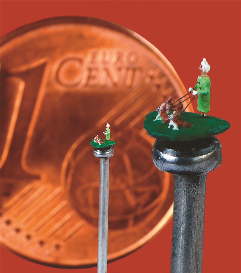 大約十年前,家具設計師和當代珠寶製造商科海頓,購買一台顯微鏡後開始雕刻她的微型藝術品。她的微雕需要用顯微鏡來創作,也要用放大鏡來觀賞。科海頓說,因為尺寸太小,製作過程中面臨諸多挑戰,尤其是在最後上色的環節,因為顏料很快就會乾燥,稍不留神就可能前功盡棄。