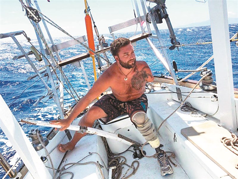 【本報綜合外電報導】二○○八年,雷諾茲(Dustin Reynolds)在夏威夷科納(Kona)被醉酒司機撞倒,左臂和左腿的一部分截肢。當他從昏迷中醒來後,立即感到餘生會很艱難,但雷諾茲不但選擇堅強活下去,還獨自駕船七年半環遊世界一周。
