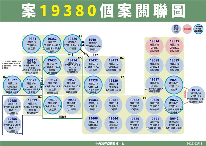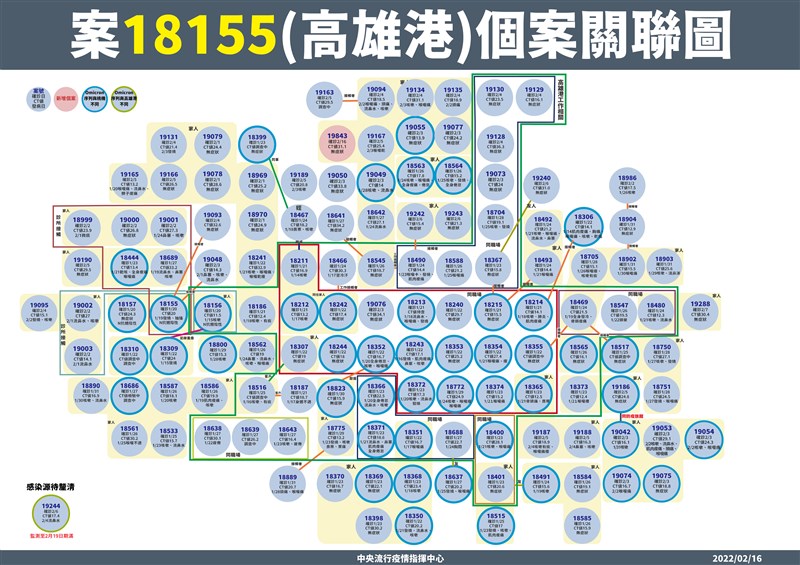本土+14例 關注新北高雄 苗栗仙草店顧客除案 |2022.02.16 語音朗讀 938觀看次 字級 大 中 小 圖/指揮中心提供 【本報台北訊】國內新增67例新冠確定病例,分別為14例本土個案及53例境外移入,有16例為航班落地採檢陽性。中央流行疫情指揮中心指揮官陳時中表示,14例本土個案,一半為居隔中陰轉陽個案,另一半還在調查中,高雄和新北都有相對個案。本土14例個案,高雄港相關1例、礁溪飯店延伸諾貝爾幼兒園2例、高雄砂石場相關2例、桃機航警1例,另增加鳳山群聚個案4例及新店設計師案相關4例。陳時中指出,礁溪飯店衍生的案例中,延伸高雄幼兒園個案,增一對父女染疫(案19812、案19811),之前同住家人已於前段時間確診,父女都在匡列隔離範圍,今天礁溪飯店已無其他或未知個案,已監測期滿結案。砂石場相關個指標個案19380,周圍有零星接觸感染主要都是家庭引起的群聚,延伸到苗栗家庭原先有小孩確診,今日再增一對夫妻(案19814、19815)確診,曾於2月12日、13日採檢陰性,陪病期間陰轉陽較不用擔心。圖/指揮中心提供高雄港個案則無發散情況,但今天新增一例確診案,為匡列中陰轉陽,原先為旗津匡列確診者 (案19049)的孫女,確診列為案19843。陳時中說,「高雄港案子雖多,但控制迅速,目前看來穩定。」同時國內也有幾個感染源待釐清的案例,其中桃園航警案,2月13日有去兒子家裡,家裡有一位4歲小孩孫女,今天也確診。女童就讀的幼兒園足跡有兩天,已開始相關匡列。圖/指揮中心提供還有暫列源頭的指標個案(案19665)為新店設計師,今天案例衍生4例確診,其中一個是室友,另外三位是房屋行銷公司的三人,源頭還無法斷定。另外還有高雄新一起家庭職場群聚,延伸煉油廠確診共4例。陳時中說,還有跨縣市的案子原有仙草店顧客確診,如今二採陰性,確定後已排除案號。圖/指揮中心提供 前一篇文章 明霸克露橋臨時便道 今起改走鋼便橋 限速30公里 下一篇文章 新北設計師定序同桃機群聚 不明傳播鏈減為10條 熱門新聞 01法全票通過 掠奪文物歸還中國2026.04.1702MLB太空人打敗洛磯 鄧愷威中繼成功2026.04.1603勞動部將研議 勞退舊制移入新制2026.04.1804【詩】靜寂 2026.04.170545%失智症可預防 類黃酮食物護大腦2026.04.1606多倫多佛光山寺院體驗營 青年探索內心2026.04.1607【詩】春天的孤挺花2026.04.1608【詩】 鐮刀俠2026.04.2109星雲大師紀念特展 紐西蘭一館開幕 2026.04.1610普門品交響清唱劇妙法之歌 5月12日中山堂首演2026.04.17 訂閱電子報 台北市 天氣預報 台灣一週天氣預報 相關報導 花蓮疊石藝術季 高手雲集寵物美容定型契約 飼主怨被超收費桃園燈會作品 開啟新篇章體驗超輕航機 5月報名都市林10年計畫 打造樹蔭通勤廊道還地於河 磺港溪重生