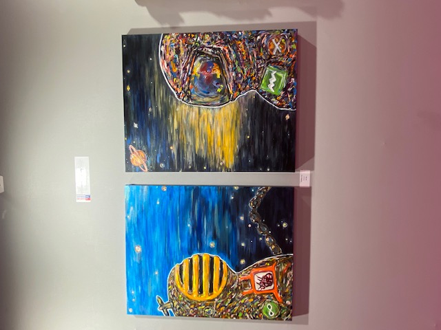 巴黎「藝術之都」國際沙龍展開幕,台灣藝術家潛水夫也參展,圖為其作品描繪太空人與潛水夫的相互凝視與仰望。圖/文化部提供