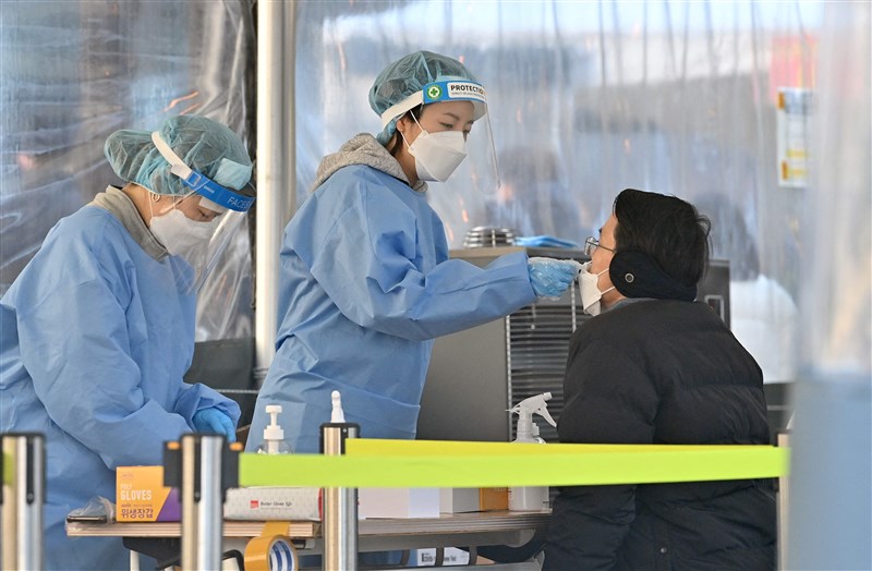 Omicron變種席捲全球,南韓的單日新冠確診數18日突破10萬大關。圖╱法新社