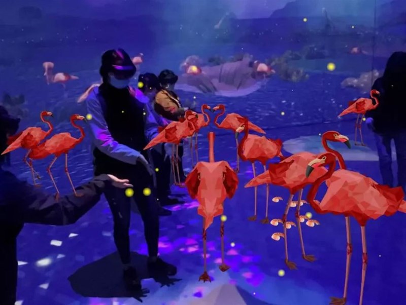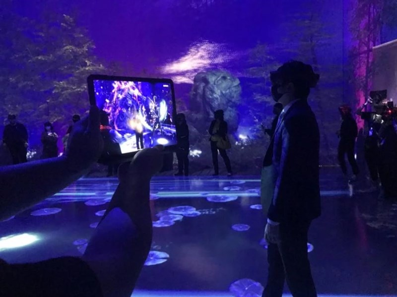 全球首創混合實境暨沉浸式劇院18日高雄開幕,民眾可透過MR眼鏡,體驗與動物互動。圖/高市經發局提供