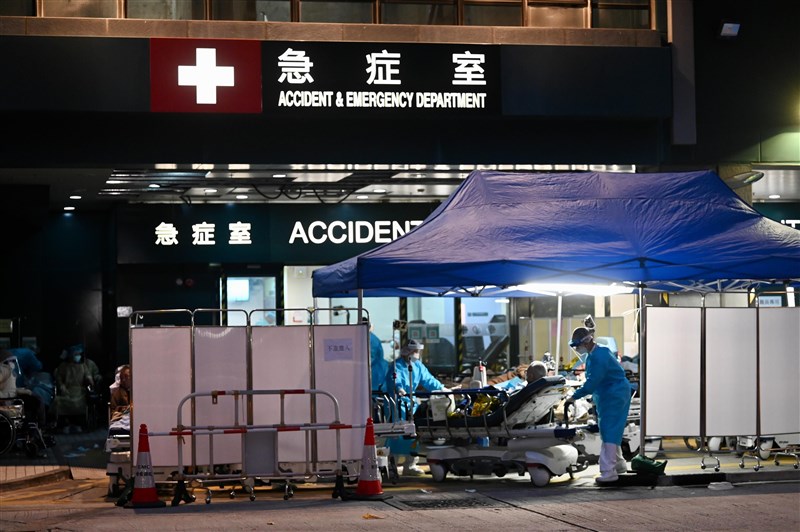 【本報綜合報導】香港第5波疫情狀況危急,春節後新冠確診病例數量急遽攀升,公營醫療系統面臨龐大壓力,隔離設施欠缺則是另個棘手難題。香港上午天氣明顯轉冷並出現降雨,但部分醫院外的臨時帳篷區仍有病人在戶外等待安置。