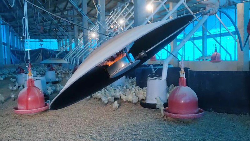 寒流溼冷,雲林養雞業啟動瓦斯暖氣,為小雞保暖,用心良苦。圖/蔡維斌