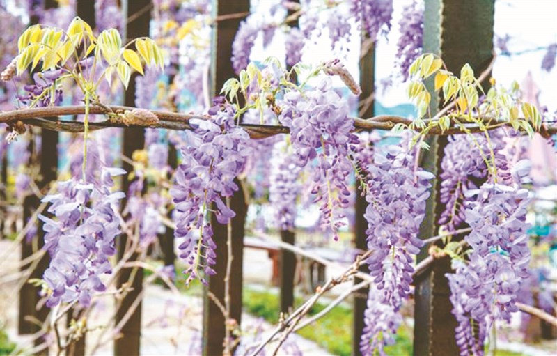 武陵農場除了是著名的賞櫻景點,在春天也能欣賞到夢幻稀有的白藤花;園內種植百棵樹齡超過三十年的白藤花,花量豐沛且香味濃郁,在山頭形成美麗花海,令人宛如置身「白雪公主」色系純淨的童話世界中。