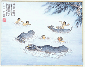 從前鄉下小孩個個會游泳,都是因為經常陪著水牛在池塘玩水,自然而然就無師自通地學會游泳。