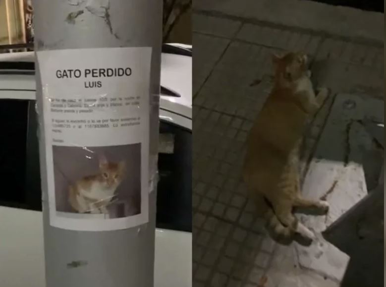 阿根廷一名女子卡蜜拉(Camila Castoldi),某日在自家周邊散步時,瞥見電線桿上一隻橘白貓的尋貓啟事。然而就在她移動目光往下一看的時候,發現一隻橘白貓正好躺在下方。一一確認身上特徵後,發現這隻貓正是那隻走失的路易斯(Luis)。