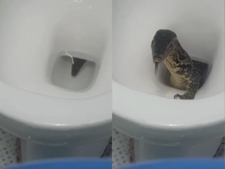據「每日郵報」報導,恰蒂瑪(Chantima Chairisuk)正想上廁所時,赫然發現馬桶裡有神祕黑影在移動,最後甚至探出頭和他們四目相接。而那隻生物其實是亞洲水巨蜥,不時吐出舌頭並四周環顧,兩人就這樣持續觀察了3分多鐘,最後巨蜥鑽回馬桶就此消失,讓這場旅遊驚魂平安落幕。