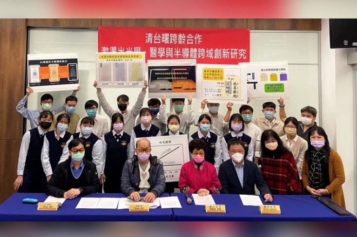 清大周卓煇教授研究團隊,新竹台大分院眼科主任葉伯廷醫師,曙光女中科學社,三方跨齡、跨域創意、創新研究,有重大發現,今(23)日聯合召開記者會叔表研究成果。圖/清台曙提供