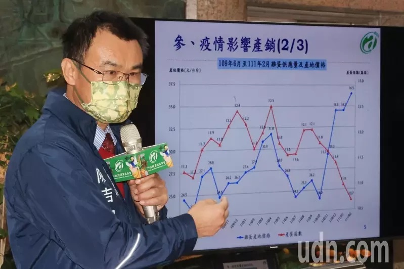 其次,原物料上漲、生產成本墊高,去年12月每公斤15元,漲了3成。第三則為溫差過大、禽流感疫情等因素影響。