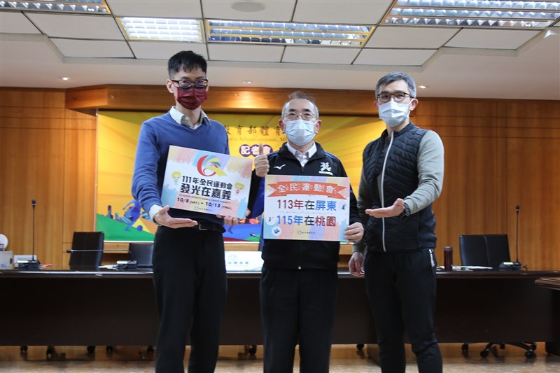 教育部體育署公布113年及115年全民運動會,由屏東縣及桃園市承辦。(左起:全民組王力恆科長、呂忠仁組長及李聯康視察)圖/體育署提供