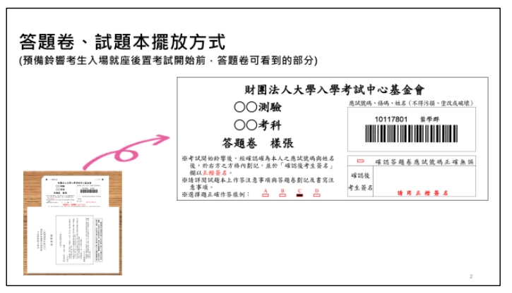 大考中心強調,110 學年度以前,是於考試鈴響開始後,監試人員核對考生身分後請考生於考生名冊上簽名。但許多高中師長反映,學生表示考試中簽名會打斷作答思緒。因此,自確定於 111 學年度起之各項考試將使用新式答題卷後,即設計於答題卷上方設置簽名欄,請考生於考試開始鈴響後自行簽名,監試人員仍須核對身分,但過程中不再因簽名而打擾考生。