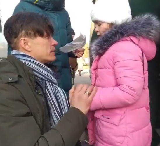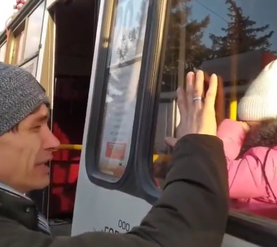 這名烏克蘭爸爸為了保衛國家而留下來,但他擔心家人受到波及,於是將老婆和女兒送上巴士離開。在離別前他將自己的物品交到女兒手中,並叮嚀了幾句,講到最後還痛哭地擁抱親吻她,女兒也捨不得離開爸爸,倒在爸爸懷裡大哭,最後離別的那一刻,這名爸爸用手貼著車窗和家人說再見,讓不少人看到影片也感到難過。