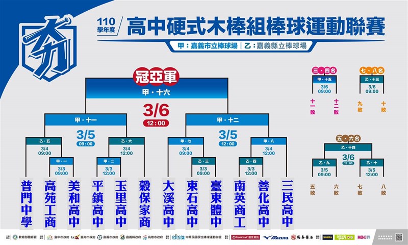今天賽後高中木聯12強全數出爐,並由佛光山普門中學、三民高中、穀保與大溪取得8強種子資格,其他12強隊伍包括高苑、美和、平鎮、玉里、大溪、東石高中、東大體中、南英商工與善化高中。