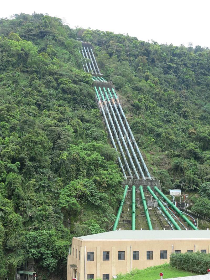 使用已達的89年的大觀電廠,目標明顯的5支高位差的鋼管,是國內水力發電的主力。圖/黑中亮
