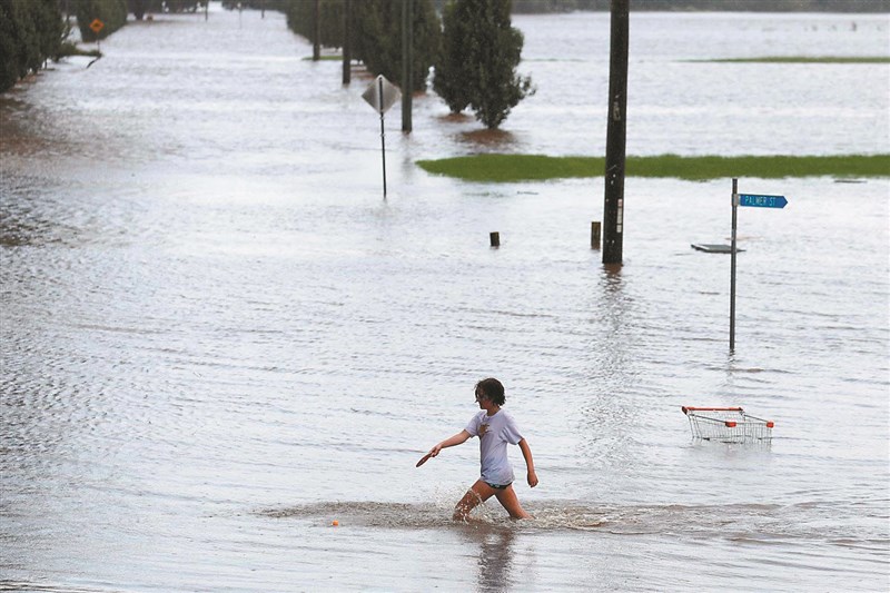 澳洲雪梨郊區一名女童,三日涉水通過霍克斯伯里河沿岸不斷上漲的洪水。圖/法新社