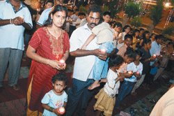 參與的信眾手持一燈向佛陀參拜,祈求將平安希望帶回家,為自己為他人祝福,共同營造一個眾緣和諧的人間淨土。