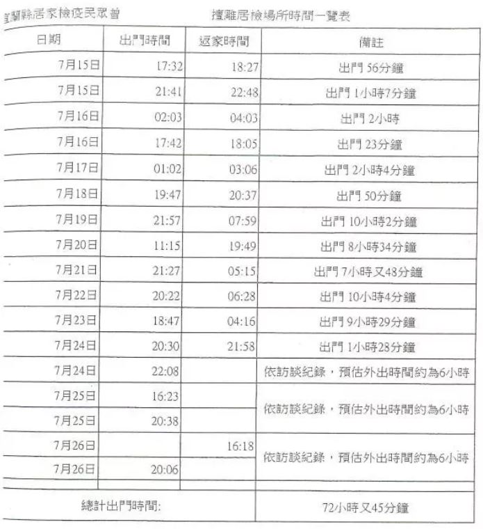 曾姓男子2020年7月由菲律賓入境,應遵守入境後14日居家檢疫,卻在入境3日後擅離居家檢疫處所,每天外出1至2次用餐甚至夜宿在外,到處趴趴走,擅離原因竟是向衛生局表示「太熱」、「無聊」,總計外出時間為72小時45分鐘。