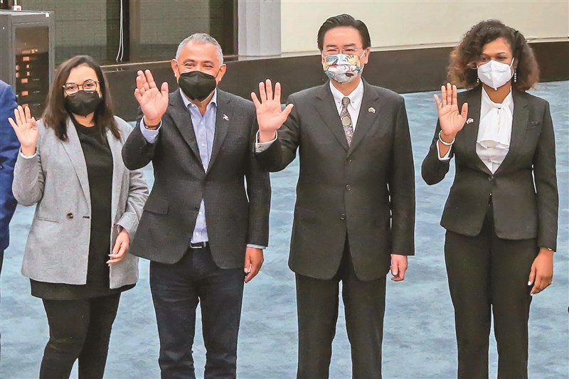 貝里斯總理布里仙紐(John Briceno)(左2)伉儷一行8人,應邀來台訪問。外交部長吳釗燮(右2)前往接機。圖/中央社