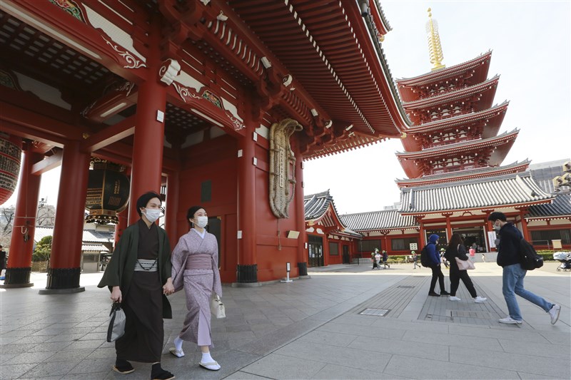 日本政府擬進一步放寬防疫管制,4月起將從外國入境人數上限再放寬到每天1萬人。圖/美聯社