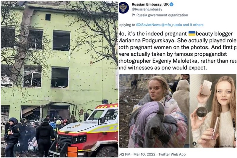 BBC報導,烏克蘭馬立波(Mariupol)一間醫院9日遭到襲擊、造成3人死亡,但俄羅斯駐倫敦大使館的推文指稱,醫院當時沒有運營,還稱現場照片中的受傷婦女是「演員」。