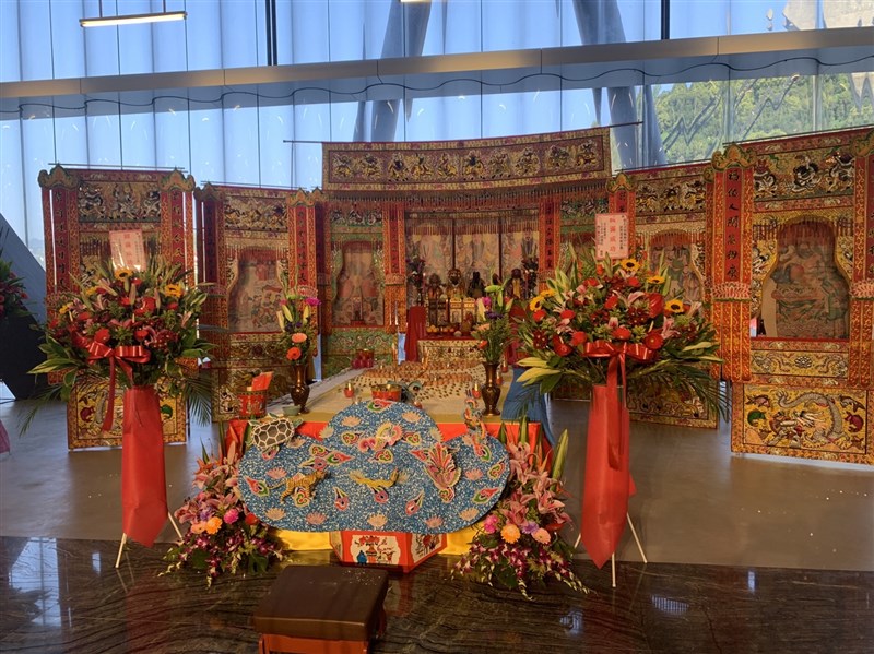 為祈求試營運順利,北藝中心特別酬神看戲,上午迎來士林街福德宮「福德正神」、慈諴宮「媽祖」、神農宮「神農大帝與福德正神」、芝山岩惠濟宮「開漳聖王」等宮廟主神,邀請祂們進北藝中心。圖/記者曹麗蕙