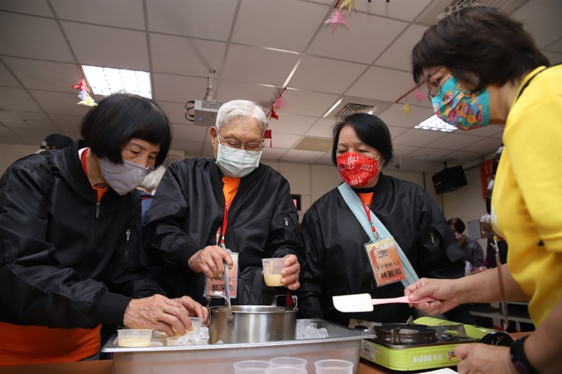 最高齡的領頭騎士、98歲的郭深森也加入為弱勢長輩做雞蛋布丁。圖/弘道基金會提供