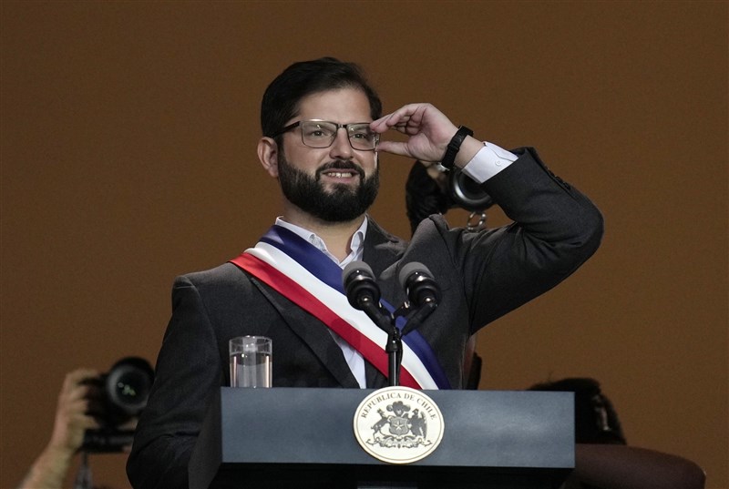智利新總統柏瑞克(Gabriel Boric)今天在國會宣誓就任,現年僅36歲。圖/美聯社