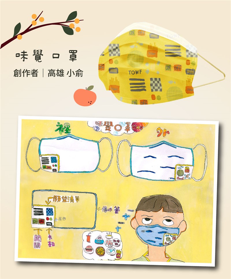 思念也是一種味道 義賣「味覺口罩」 意外熱銷 李祖翔 |2022.03.14 語音朗讀 1611觀看次 字級 大 中 小 失親兒少創作變商品,填補藝術課程經費缺口。圖/失親兒基金會提供 【記者李祖翔台北報導】2019年起失親兒基金會策辦「夢想藝術計畫」,為有藝術天分的孩子培訓、提升能力,也在品格上有所成長,而為了鼓勵及籌措課程經費,會將學員的創作變成義賣商品,今年就推出「味覺口罩」,傳達失(思)親訴求,廣獲好評。「口罩裡層有願望清單,按了開關,你思念的味道就會出現在外面。」這是國小高年級的小俞在主題「如果我是發明家」的課程時想像出來的,雖然無法立即實現,失親兒基金會還是採取其中元素,製作出「味覺口罩」,上面沒有任何食材的氣味,只有失親兒少的「心意」。創作者小俞認為:「你如果特別想念某種味道,例如家鄉,用這個就會有你想聞到的味道。」一如上面畫的薯條,就象徵某個失親兒與已逝的父親或母親共同的回憶。味覺口罩的設計理念源自失親兒少充滿想像力的創作。圖/失親兒基金會提供「把創作變商品,最主要的目的是給孩子表現的舞台,及填補夢想藝術計畫的經費缺口。」失親兒基金會表示。夢想藝術計畫對孩子的幫助超乎想像,如失去父母後,有孩子被同儕冠上「愛哭」的綽號,沒有父親疼愛,還背負一屁股債,母親更得照顧年老阿公與年幼的兒女,這樣的生活讓他們極度的自卑和感到孤單,對人不信任也不安,直到老師發掘他們的繪畫潛力,參加比賽、獲獎,再加入夢想品格藝術營,更加確定未來方向,能在人生畫布上揮灑色彩。現在作品還能變成商品,為課程盡一分心力,孩子都很開心。基金會說,過去推出了筆記本、餐墊與明信片,也在音樂會上義賣畫作,「義賣是為了填補夢想音樂營、藝術營約180萬的經費缺口」,而或許是口罩實用性較高,支持者比以往多很多,「大概是有史以來賣得最好的」。振奮之餘,基金會也期盼社會大眾繼續支持紅包袋和其他文創小物的義賣。孩子的作品化身義賣商品,讓粉絲做愛心又能收藏。圖/失親兒基金會提供義賣網址:https://orphan.eoffering.org.tw/contents/goods 前一篇文章 俄烏第四輪視訊談判 雙方均釋樂觀信號 下一篇文章 桃機部分區域11日停電 機場公司全盤檢討提升供電穩定 熱門新聞 01【詩】 鐮刀俠2026.04.2102勞動部將研議 勞退舊制移入新制2026.04.1803普門寺愛書人行佛 探討社會議題 2026.04.1804佛光山開山60周年 傳授三壇大戒2026.04.2005南投補助洗冷氣 估減碳排3.3萬噸2026.04.1806用說話鍛鍊大腦2026.04.18072026地球日 行動永續綠色未來 2026.04.2208氣候變遷 牽動美年輕人生育觀2026.04.1909永和學舍慶佛誕 千人浴佛清淨身心2026.04.2210【營養專欄】外食族必學:補菜四策略2026.04.18 訂閱電子報 台北市 天氣預報 台灣一週天氣預報 相關報導 美太空人林琪兒 重返兒時舊居地第18屆兩湖論壇 南投登場總統訪史瓦帝尼 臨時喊卡陸惠台措施 商總:利民就該開放台灣引領轉型AI Google肯定天龍演習 揭密機艙 作者其他文章家扶無窮世代計畫 5千萬元缺口待補 憂YTR倡偏方 陽光急闢謠:燒燙傷快「沖冷水」2022金扶獎頒獎 賴清德勉勵5位自立「家扶兒」淨灘、立槳到吃素 培力園帶孩子體驗生活新風貌讓愛流動 祖父母為己立傳邀祖父母為自己立傳 壯世代讓家庭的「愛」流動