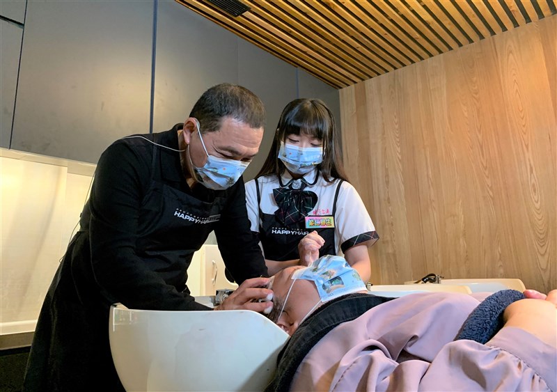 能仁家商建教生薛子語教市長進行深層潔淨放鬆洗髮。圖/新北教育局提供