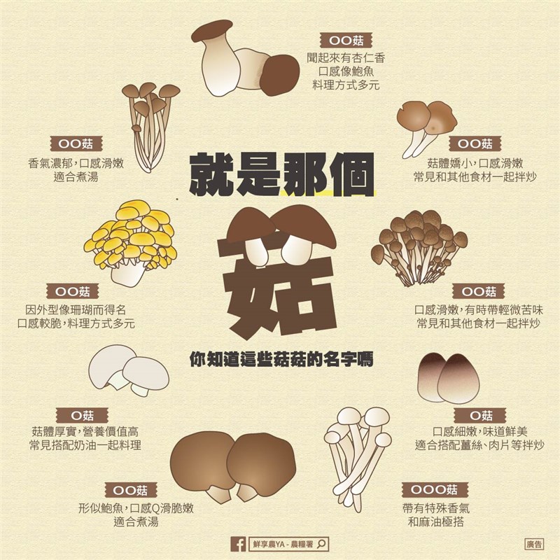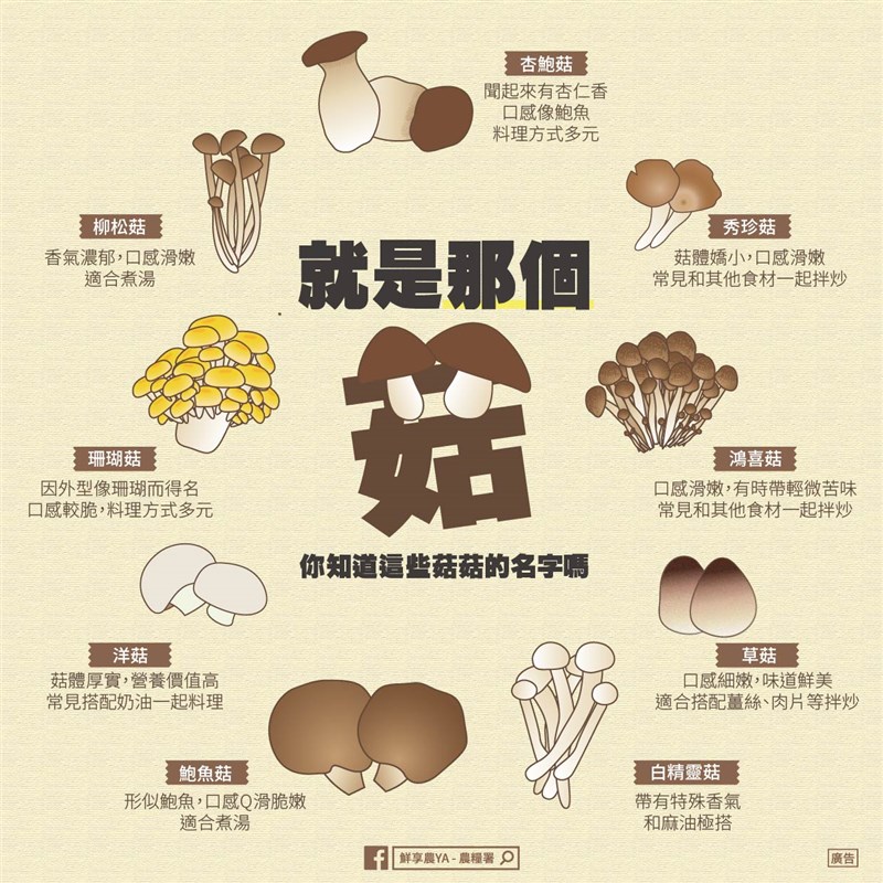 挑戰香菇知識 這9種菇菇都吃過了嗎? |2022.03.15 語音朗讀 4831觀看次 字級 大 中 小 圖/123RF 【記者楊旻芳台北報導】菇類營養價值高美味又好吃,幾乎搭在任何的菜色都十分適合,知名營養學家珍妮特.傑克森也曾在《每日郵報》中提到,菇類富含維生素B,能改善皮膚、頭髮和指甲健康,豐富的礦物質鐵和鋅,更是維持健康不可或缺的。除了常見的香菇,還有超多種菇的種類,每一種菇的名字跟特色都不同,農糧署特別整理常見的菇菇種類,趕快看看可以叫出哪幾種菇的名字?圖/農糧署秀珍菇農委會資料顯示,秀珍菇又名鳳尾菇,是蠔菇屬的一員、鳳尾菇未成熟的菇體,含有多種養分,包含高量蛋白質、碳水化合物,秀珍菇含有抗腫瘤細胞的多醣體,對腫瘤細胞有抑制作用,且具有免疫特性。杏鮑菇杏鮑菇菇柄粗大、色澤乳白,肉質肥厚,菇柄口感類似鮑魚,有淡淡杏仁香氣,因而得名,質地細膩滑Q,煎煮炒炸皆可。鴻喜菇鴻喜菇質地甘脆細緻。主要成份為多醣體,並富含纖維質,更蘊含維生素B群,還有低脂肪、低熱量等優點。可提升免疫力,與不同菇類一起食用,效果更加分;礦物質部分比較獨特的是硒和鋅,硒有抗氧化、延緩老化的功效,鋅對傷口癒合有幫助,也有助於提升免疫力與防癌。購買鴻禧菇時,挑選菇傘圓厚、顏色深為佳,菇柄最好顏色潔白、有彈性。草菇草菇,它是一種重要的熱帶亞熱帶菇類,草菇的營養價值非常高,是大家不可忽視的食物。草菇因常常生長在潮濕腐爛的稻草中而得名,多產於兩廣、福建、江西、台灣,是世界上第三大栽培食用菌。草菇的蛋白質含有18種氨基酸,其中必需氨基酸佔40.47-44.47%。此外,還含有磷、鉀、鈣等多種礦質元素。草菇的維生素C含量高,能促進人體新陳代謝,提高機體免疫力。還具有解毒作用,如鉛、砷、苯進入人體時,可與其結合,形成抗壞血元,隨小便排出。中醫認為草菇性寒、味甘、微咸、無毒。草菇還能消食祛熱,補脾益氣,清暑熱,滋陰壯陽,增加乳汁,防止壞血病,促進創傷癒合,護肝健胃,增強人體免疫力,是優良的食葯兼用型的營養保健食品。白精靈菇含豐富榆菇多醣、氨基酸、維生素B群、葉酸與鈣、磷,另含非金屬元素硒。鮑魚菇鮑魚菇又稱台灣平菇,菇營養豐富,肉質肥厚,風味獨特,含有8種人體必需氨基酸。鮑魚菇是木腐型菇類,但其分解木材的能力較弱。栽培鮑魚菇的主要原料有棉子殼、玉米芯、雜木屑、稻麥草、麩皮、玉米粉等幾種,輔料有糖、碳酸鈣。這些原輔材料經合理配製後,就能滿足鮑魚菇生長所需的各種營養物質。洋菇洋菇有「蔬菜牛排」之稱。其蛋白質含量比一般的蔬菜和水果要高出許多,也包括人體不能合成、必須從食物中攝取的8種必需胺基酸,蛋白質的胺基酸組成比例,甚至比牛肉更好。洋菇的維生素含量、纖維素含量都很高,可提高機體免疫力,有利於骨骼健康,甚至可以防止便秘,降低血液中的膽固醇含量。珊瑚菇珊瑚菇又稱為黃金蘑菇,外形嬌嫩可愛,有淡淡的奶油清香,豐富的礦物質鋅。珊瑚菇的普林值含量是菇類中最低的,甚至比主食白米還低,連痛風患者也可以安心食用。含多醣體及豐富的鋅。且磷、鉀、鈉含量相當低,皆優於腎臟病患的攝取標準。 柳松菇柳松菇又叫白柳松菇或葉樹菇,柳松菇富含脂質與醇類,帶有獨特的香味,含多種維生素、礦物質,提供人體不能自製的8種必需氨基酸,包括一般穀類常缺乏的離胺酸等,可降低血液中膽固醇的含量,及強化肝臟功能。有低脂肪、高蛋白優點,含大量纖維質,久炒不爛,是標準的高纖菇,高量纖維可刺激腸胃蠕動消除便秘,有助預防直腸癌與結腸癌。菇菇的好處多多,有平民價格又有超高營養價值,菇類含有大量的礦物質,其中蛋白質的含量界於蔬菜跟肉類之間,所以會比起一般的蔬菜更有營養和飽足感,也是素食者攝取蛋白質的來源!因為菇類低脂肪、低熱量,富含滿滿的膳食纖維,有助於消除便祕,還能抑制多餘的脂肪吸收,放慢消化速度,抑制血糖值上升,能降低膽固醇,保護血管,另外它所含有的脂肪大部分是不飽和脂肪酸,因此對人體也較沒有負擔。日常中不妨多攝取菇類,好吃百搭又營養。這9種菇類的名稱,都答對了嗎?圖/農糧署報導來源:https://health.udn.com/health/story/6037/4155213https://www.hokto-kinoko.com.tw/product.php#gu2https://zi.media/@twpetsearcharlinksnet/post/amyAw7https://health.udn.com/health/story/6037/350341https://health.udn.com/health/story/6037/367893https://mall.agaric.com.tw/item/ins.php?index_id=132https://www.facebook.com/1653774761545401/posts/1656614571261420/https://www.itsfun.com.tw/%E9%AE%91%E9%AD%9A%E8%8F%87/wiki-0587446-5944326 前一篇文章 每學期上課16周 台大推新制8月上路 下一篇文章 民間馳援烏克蘭 聯合國難民署:捐逾57億創紀錄 熱門新聞 01法全票通過 掠奪文物歸還中國2026.04.1702勞動部將研議 勞退舊制移入新制2026.04.1803【詩】 鐮刀俠2026.04.2104【詩】靜寂 2026.04.1705普門品交響清唱劇妙法之歌 5月12日中山堂首演2026.04.1706普門寺愛書人行佛 探討社會議題 2026.04.1807補鈣最佳時機 晚餐後或睡前1小時2026.04.1708南投補助洗冷氣 估減碳排3.3萬噸2026.04.1809佛光山開山60周年 傳授三壇大戒2026.04.2010用說話鍛鍊大腦2026.04.18 訂閱電子報 台北市 天氣預報 台灣一週天氣預報 相關報導 第18屆兩湖論壇 南投登場總統訪史瓦帝尼 臨時喊卡陸惠台措施 商總:利民就該開放台灣引領轉型AI Google肯定天龍演習 揭密機艙美議