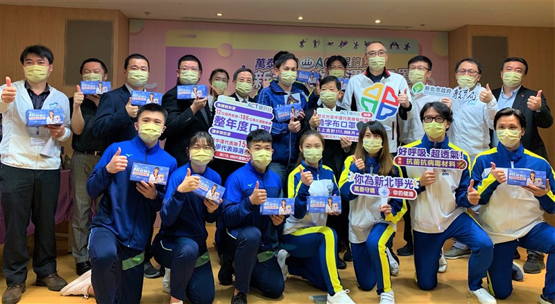 【記者曾博群台北報導】新北市在地企業萬泰科技集團力挺運動教練及選手,支持國內運動賽事防疫工作不遺餘力,於今(17)日以贊助運動口罩給新北市200位運動教練、全中運代表隊1500位選手及5所小學共11萬1888片市值108萬元口罩,象徵111年新北市代表隊參加4月份在花蓮舉辦的全中運成績發發發、一定發。