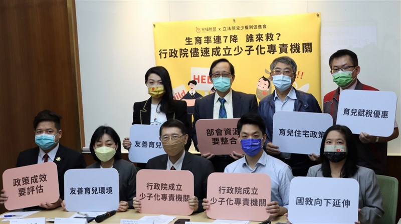 為此兒福聯盟、兒童健康聯盟、兒科醫學會、家扶基金會、瑞信兒童醫療基金會等團體,與立院兒少權利促進會跨黨派立委蔣萬安、王婉諭、羅美玲、邱臣遠及高虹安共同召開記者會,體檢現行少子化政策的病因,呼籲行政院成立少子化專責機關、定期檢視政策執行成效、優先回應育兒家長需求及提供家長全方位育兒支持。