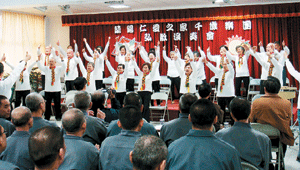 【人間社記者黃仁仙礁溪報導】蘭陽仁愛之家安老所、菩提學苑及社區長者所組成的「千歲交響樂團」一行二十八人,四日由主任覺方法師帶領到三星監獄弘法,並與受刑人互動。
