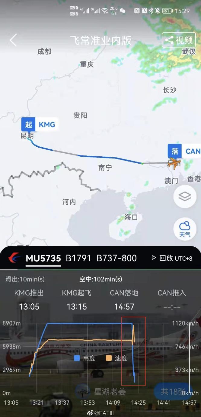 東航墜機 恐釀21世紀以來中國最大空難 |2022.03.21 語音朗讀 871觀看次 字級 大 中 小 東航MU5735從昆明飛往廣州的航班的波音737客機。圖/新浪微博照片這架東航MU5735從昆明飛往廣州的航班墜機後引發的爆炸,產生濃煙。圖/新浪微博照片 【本報綜合報導】據大陸多個航空媒體微博博主(部落客)消息,東方航空MU5735由昆明飛往廣州,根據Flightradar24顯示,速度和高度在下午14時50分左右,在廣西梧州附近出現驟降,瞬間掉落山區,該飛機正常的落地時間應為下午15時5分。據九派新聞報導,3月21日,網傳中國東方航空MU5735從昆明飛往廣州的航班在廣西梧州附近墜毀,飛機機身引發爆炸後,引起森林大火和濃煙。大陸專家稱,這是中國大陸21世紀以來最大的空難,傷亡人數目前還不明朗。據央視新聞報導,記者從廣西應急管理廳獲悉,一架東航搭載133人的波音737客機在廣西梧州藤縣發生事故,並引發山火。目前救援隊伍已經集結正在靠近,傷亡情況未明。九派新聞聯繫廣西梧州市應急管理局,工作人員確認飛機相關事故發生,目前正在準備組織救援,不便透露更多情況,後續將開新聞發布會。中國東方航空告訴九派新聞,目前飛機是未落地狀態。廣州白雲機場客服稱,目前機場方系統顯示,飛機仍是起飛狀態,不排除系統延遲原因,「暫未顯示落地」。這架東航MU5735從昆明飛往廣州的航班的飛行圖,顯示飛機尚未落地。圖/新浪微博照片另據上游新聞,21日,該網記者致電東方航空客服,客服繁忙未能接通。隨後,電話聯繫上廣西梧州消防部隊,工作人員表示,已經接到了相關救援消息,正在調派力量趕赴現場進行確認,消防現在所有在位的人員都出動了。現在沒有明確的地點,稍後會有具體的消息發布。據梧州消防介紹,該客機所處地方地理位置比較邊緣,不是村落或城市,而是在一邊山脈中。現在,當地消防正在盡快趕往現場。藤縣隸屬於廣西壯族自治區梧州市,東接蒼梧縣、長洲區、龍圩區,南界岑溪市、玉林市容縣,西鄰貴港市平南縣,北與蒙山縣、昭平縣毗鄰。另據新浪微博網友提供的飛行圖顯示,這架MU5735從昆明飛往廣州的航班,有折返的現象,應該機長和機組人員已經發現機械問題,準備返航,但最後仍然發生了意外。而大陸廣西網友,已經把飛機墜落後產生的濃煙影片上傳,顯示,該機已經在山區深處墜機。機上人員恐怕兇多吉少。 前一篇文章 34萬莫德納、7萬BNT本周到期 31.2萬AZ恐月底報廢 下一篇文章 超商齊推蔬食 全家蔬食尚3/23起推7款便利餐 熱門新聞 01【讓愛自由】纏繞與獨立之間2026.04.0202新生首次到校2026.04.0203星雲大師靈骨分燈泰國 化益世人2026.04.0204打字機重返課堂 對抗AI代寫2026.04.0205男子氣概照護員 日本長照新力量2026.04.0506租賃車業者違法攬客 觀光署:最高罰200萬元2026.04.0707緬甸佛學院訪佛光山 深化教育弘法發展2026.04.0208日月潭蓄水率 跌破6成2026.04.0209睡足多運動常吃蔬菜 改善生活習慣促健康2026.04.0210徐若熙日職初登板 6局6K奪首勝2026.04.02 訂閱電子報 台北市 天氣預報 台灣一週天氣預報 相關報導 鄭麗文會宋濤:兩岸非註定一戰鄭麗文今訪陸 預計4月10日晤習台澎海空疏運高峰 逾8千人提前返台海軍敦睦艦隊 進入巴拿馬運河中油高雄大林廠火警 環保局開罰桃機3航廈屋頂 設10公里天溝
