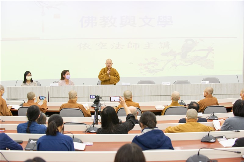 佛光山文化院院長依空法師,今(21)應佛光大學之邀,在《中國佛教文學史》新書發表會上,以「佛教與文學」為主題進行專題演講,吸引滿場觀眾和粉絲參加。圖/人間社記者廖丰碩