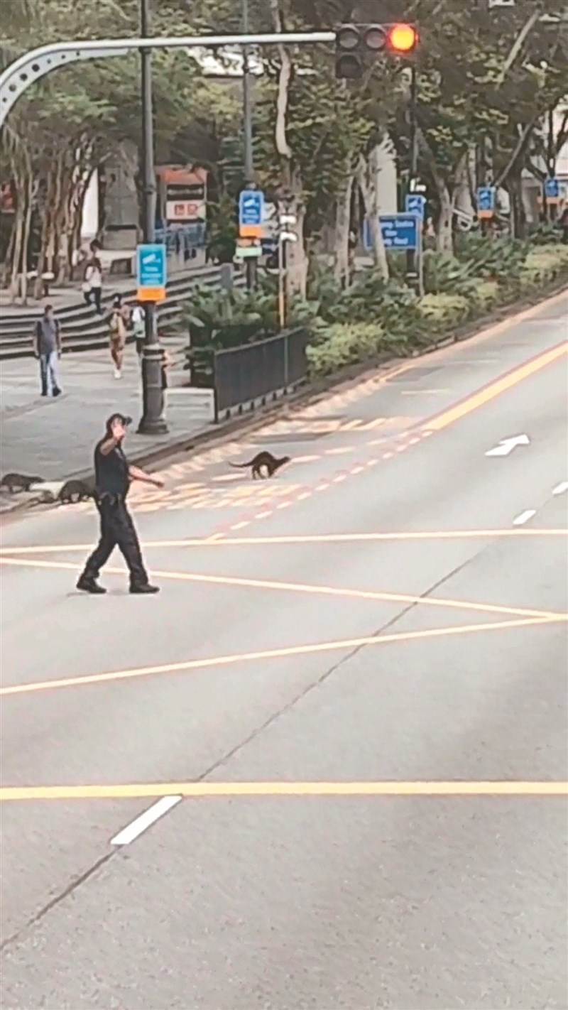 隨後又有水獺在市區出沒,這次出手的是熱心民眾。網上再傳出影片,有群水獺站在橋北路福南購物中心,這次牠們和路人一起等交通燈號過馬路,許多民眾駐足觀看。沒想到其中一隻太心急,見路面沒車,竟然闖紅燈帶其他同伴過馬路,幸好有幾位民眾跟上幫忙,舉手向車輛示意放慢車速。網友笑稱要斥責牠們亂過馬路,但又指牠們很可愛,有資格當新加坡旅遊大使,「這才是真正的VIP」、「新加坡牠們最大」。