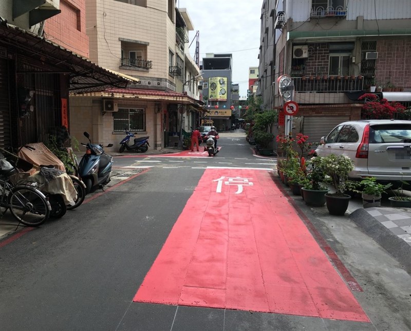 為降低鄰里巷弄路口交通事故,交通局借鏡日本,針對6米以下巷道且易生事故的非號誌化路口。在巷弄支道試辦紅色鋪面加上「停」字,巷弄主幹道畫設楔型標線,期能達到警示效果。達到用路人減速慢行,安全通過路口。