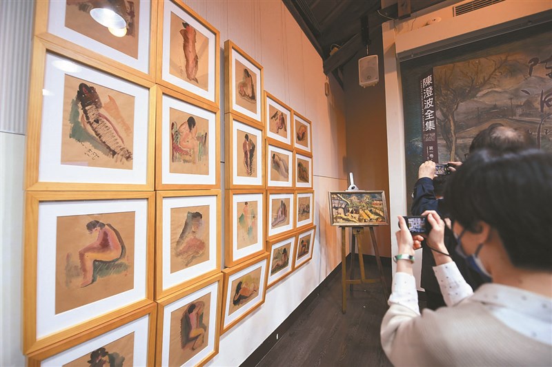 《陳澄波全集》出版完竣發表會現場,展出多幅陳澄波真跡畫作。圖/中央社