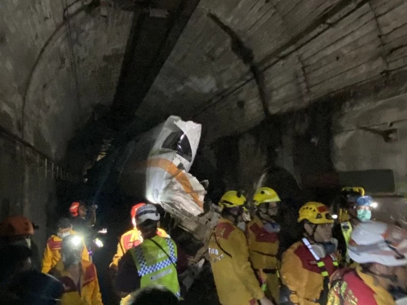 台鐵太魯閣號去年4月2日發生出軌事故,造成重大傷亡,其中隧道內的第7、8節車廂死傷最慘重。圖/資料照片、花蓮縣政府提供