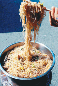《大廚上菜》超Q的炒米粉 掌廚--廖招香 |2008.03.09 語音朗讀 461觀看次 字級 大 中 小 準備細米粉1包,泡水備用,再買好高麗菜1顆、 紅蘿蔔1條、 香菇及包心菜,然後將胡蘿蔔切絲,米粉泡軟後,要再蒸20分鐘,如此才水份不高,更Q。米粉下鍋後先熄火,讓每一條米粉都吸收到湯汁,拌好後再開火炒香,香菇泡軟也一定要把水擰乾。用筷子快速拌勻米粉,拌的時候可以加上適當的水,如果想吃濕一點的,加多一點水,乾一點就水少放一點。攪拌均勻後,再放入切好的高麗菜、紅蘿蔔及適量的水,加醬油炒熟後先盛起,最後將醬料淋上米粉即可,加一點糖和烏醋更對味,起鍋後灑點芹菜末更香。 前一篇文章 國民美食 忠實表達甘甜 下一篇文章 古意梅鋪 尋找清淨好食材 熱門新聞 01福山寺贈吉祥公益米 送暖彰化社區2026.01.1202搶太空資源 陸申報20萬顆衛星2026.01.1203東京消防演練 秀古老打火絕技2026.01.1304【台灣媽媽在荷蘭】體驗阿爾卑斯山冬季魅力2026.01.1205雕塑家攜手社區 共護大自然 2026.01.1106野森動物學校 17日試營運2026.01.1307【人間風景】往事好回味2026.01.1308內蒙古 冰雪節2026.01.1309【論愛談情】有了儀式感 多了幸福感2026.01.1310美中俄覬覦北極 歐盟擬成立常備軍隊2026.01.13 訂閱電子報 台北市 天氣預報 台灣一週天氣預報 相關報導 【蔬活日常】涼拌菜其實不簡單【時令滋味】冬收曳翠姿 賀節好食芥【樂活蔬食】一碗南瓜黑豆湯找回甘美滋味【賣菜郎說菜經】好霸道的皇帝豆【節氣養生】小寒 橄欖酸甜鹹 潤肺解毒【點心時間】童年的幸福小餅