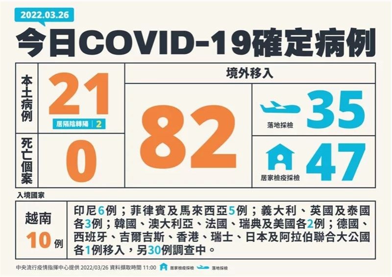 【本報台北訊】中央流行疫情指揮中心今(26日)公布新增21例新冠病毒本土病例、境外移入則有82例;截至目前,已連續三日本土確診案例突破二位數,醫師沈政男認為近期的Omicron傳播案不容小覷。