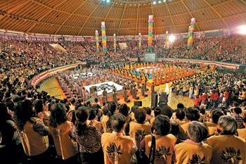 【人間社記者吳欽杉高雄報導】由佛光山寺主辦、國際佛光會中華總會承辦的「二○○八禪淨密三修法會」南區場九日在高雄體育館盛大舉行,來自台南、高雄、屏東、台東、澎湖外島等縣市萬人跟隨國際佛光會中華總會總會長心定和尚獻心燈,為國家社會祈福。 (人間社記者陳碧雲攝)