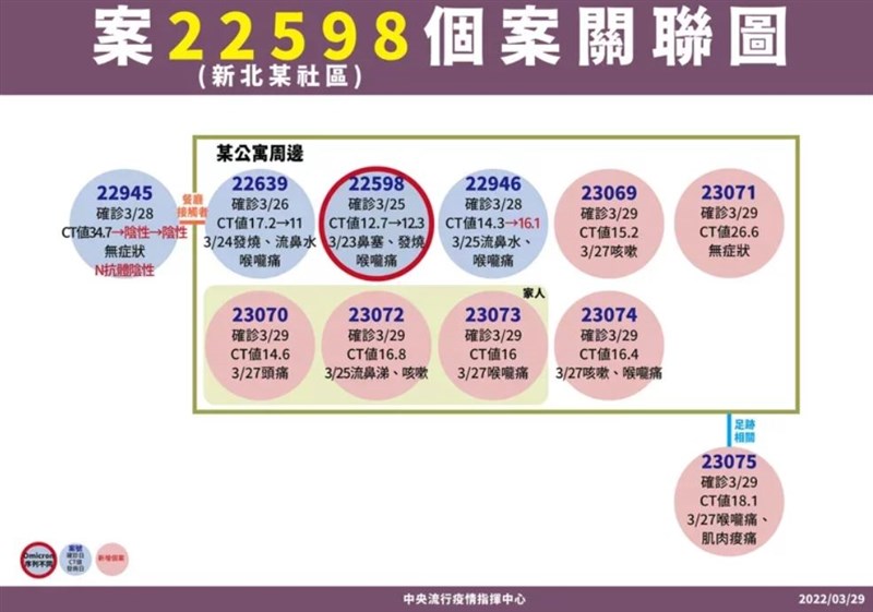 本土+33 個案多點且零星爆發 陳時中:這是警訊 |2022.03.29 語音朗讀 1442觀看次 字級 大 中 小 29日本土新增33例,指揮官陳時中指出,本土個案雖較前幾日少,但新增許多獨立個案,沒有職場、地域關聯,這是讓人比較擔心的,呼籲民眾若有症狀可到採檢站採檢。圖/中央社 【本報台北訊】國內新冠疫情持續延燒,多點爆發外更燒向中部,有多個零星個案。中央流行疫情指揮中心公布,今(29)日新增33例本土、63例境外移入。指揮官陳時中指出,本土個案雖較前幾日少,但新增許多獨立個案,沒有職場、地域關聯,這是讓人比較擔心的,呼籲民眾若有症狀可到採檢站採檢,或有足跡關聯可自行快篩。今新增本土個案為15例男性、18例女性,年齡介於未滿5歲至70多歲。其中基隆群聚新增9例個案,包括曾去小吃店的顧客一家三口、計程車司機、海大相關個案3例以及2名警員。中和足跡相關群聚也衍生出7例相關個案,其中6例皆住同一棟大樓,另1例則有相同的便利商店足跡。該棟大樓全數清空,12戶移至防疫旅館,另在景福市民活動中心開設篩檢站。社區大樓增加6名確診,多集中居住於5、7號的1至3樓住戶。陳時中說,不排除地域關係或通風管線情形,新北已把這幾棟樓清空,也要請環境專家,檢視相關排水、浴廁通風等,對於環境進一步的檢測。示意圖。圖/中央社另外,大潭電廠新增3例個案、台東家庭群聚新增3例、三重業務員群聚新增1例、高雄化工廠也增1例陰轉陽個案。而今天也冒出新的群聚和零星個案,包括彰化出現一家庭群聚,一對經營寵物用品工廠的夫妻確診,與中和足跡重疊,感染源待釐清。此外,一銀行員孕婦(案23063),3月27日出現喉嚨不適,快篩陽性後就醫確診;松山一20多歲外傭(案23064)因症狀就醫確診,其雇主(案23065)也確診; 永和一60歲女性(案23076)3月27日發燒,就醫確診;淡水一50多歲男性(案23124)3月26日發燒,28日就醫確診;基隆安樂區一50多歲男性(23126)3月26日因全身倦怠就醫採檢陽性確診。圖/指揮中心陳時中表示,從新增的8個人中分散在六起事件,感染源不清楚,且彼此間沒有看到地域或職場關聯性,過兩天疫調後也許會更清楚,「但這是一個警訊」。他表示,社區有多發的點,前兩天也新增感染源不明的群聚和個案,包括台東群聚的感染源也還不清楚。現在多縣市、多點有不明感染源,呼籲民眾要特別注意有症狀的時可到採檢站採檢,有足跡關連可自行快篩。 前一篇文章 驚險一瞬險活埋 駕駛速倒車逃死劫 下一篇文章 參與遶境均須接種3劑疫苗 不得鑽轎腳或搶轎 熱門新聞 01【分享時刻】梨木小提燈2026.03.1302【院線片】《陽光女子合唱團》淚水與歌聲創造票房紀錄2026.03.1403搞懂發酵、發霉、 腐敗差在哪裡!2026.03.1304法寶贈南天大學 學術信仰新對話2026.03.1305義大利成黑馬 經典賽8強出爐2026.03.1306星雲大師全集【傳記】 百年佛緣─社緣篇 素齋談禪的意義(節錄)2026.03.1307佛光山蓮華寺新春慶典 獲美國會頒獎2026.03.1308長期失眠傷身也傷心 睡前30分鐘放下3C2026.03.1309三好校園反毒捐血 南華師生挽袖 2026.03.1310伊朗準備長期消耗戰 揚言摧毀全球經濟2026.03.13 訂閱電子報 台北市 天氣預報 台灣一週天氣預報 相關報導 藍白拍板 聯合競選治理方向中選會人事 卓:提不同人選賴:台海和平 世界安全要素反制飛彈 防部列防禦重點2026藍白合 全民調獲共識中選會人事 主委游盈隆過關