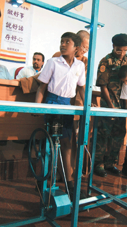 【人間社記者心敞可倫坡報導】國際佛光會世界總會、斯里蘭卡協會與藍蓮花社會運動合作,六日在斯里蘭卡可倫坡國家紀念堂送五十台腳踏發電桌子,給斯里蘭卡東北部自衛隊貧窮學生,解決學生沒有燈看書的困境。